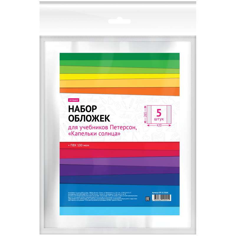 Главная / Товары / КАНЦТОВАРЫ / УПАКОВКА / ХОЗ ТОВАРЫ / РАСХОДНЫЕ МАТЕРИАЛЫ / Канцелярские товары - Школьные / Обложки и пленки школьные / Обложки для тетрадей и книг / Набор обложек (5шт.) 265*420 для учебн. Петерсон, Моро, Гейдман, Капельки солнца,ArtSpace,ПВХ 100мкм
