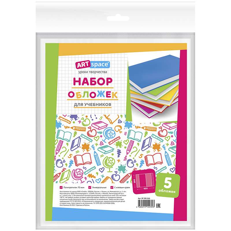 Главная / Товары / КАНЦТОВАРЫ / УПАКОВКА / ХОЗ ТОВАРЫ / РАСХОДНЫЕ МАТЕРИАЛЫ / Канцелярские товары - Школьные / Обложки и пленки школьные / Обложки для тетрадей и книг / Набор обложек (5шт.) 280*450 для учебн., универс., ArtSpace, с липким слоем, ПП 70мкм