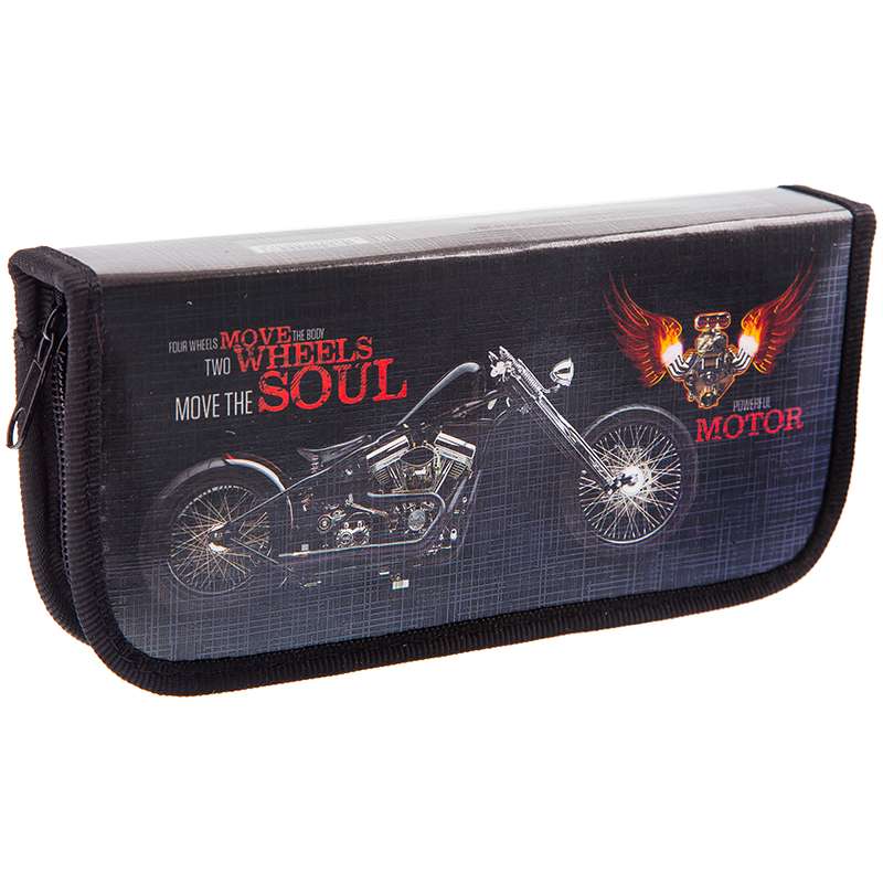 Пеналы для школьных канцелярских принадлежностей. Имеют одно отделение. Поставляются без наполнения. Размер 190х90 мм. Материал - пластик/картон. Застёжка-молния.Пенал 1 отделение, 190*90 ArtSpace "Мотобайки", ламинация