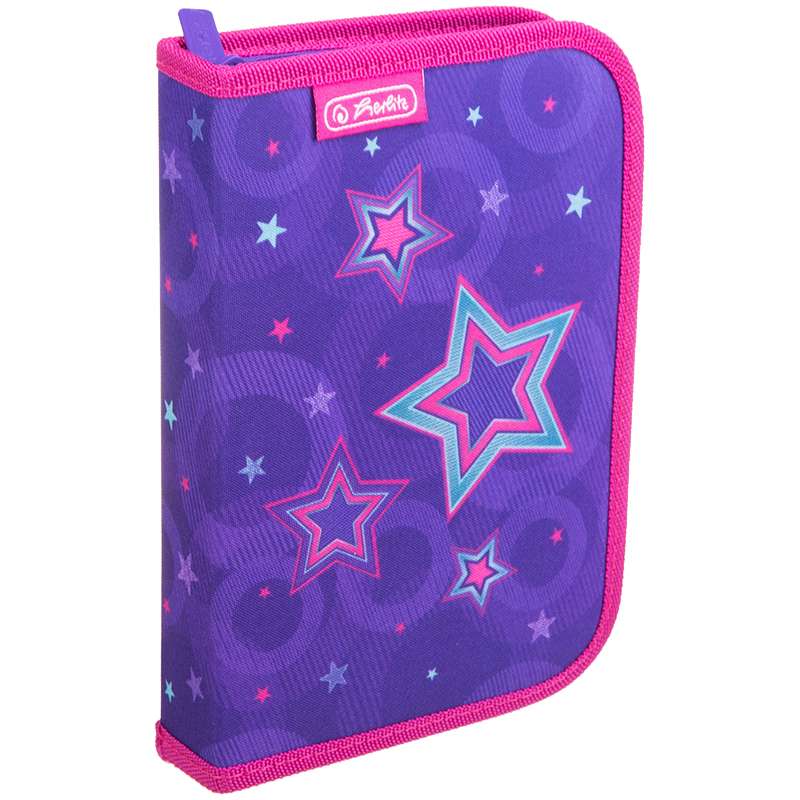 Наполнение: 8 карандашей, 14 фломастеров, ручка, линейка, угольник, точилка, ластик, 2 чернографитных карандаша, расписание уроков, карточка. Материал: полиэстерПенал 1 отделение, 200*140*35 Herlitz "Stars", полиэстер, доп. откидные секции, с наполнением