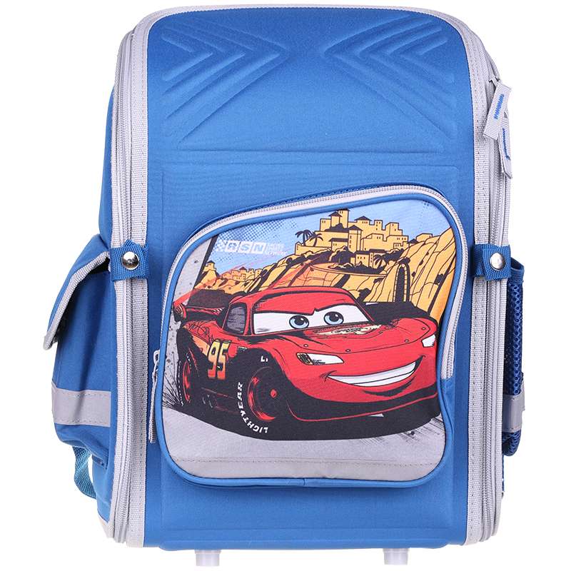 Ранец -"трансформер" с одним отделением на молнии, фронтальным карманом на молнии и двумя боковыми карманами; внутри отделения - два разделителя с утягивающей резинкой; корпус рюкзака, спинка, дно и крышка выполнены из EVA; лямки анатомической формы, регулируются по длине; для безопасности рюкзак снабжен светоотражающими элементами.Ранец Академия Групп "Cars" 34,5*26*13см, 1 отделение, эргономичная спинка