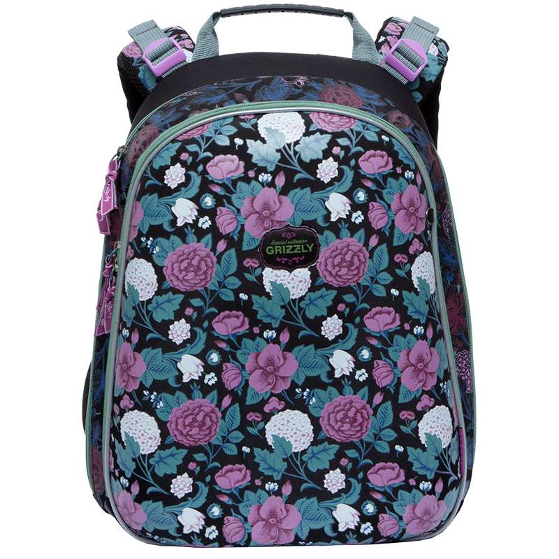 Ранец школьный для девочки формованный (хорошо держащий форму), с двумя отделениями; тремя отделами в основном отделении, внутренними карманами для ручек, телефона, мелочей и тетрадок и держателем для ключей в переднем отделении; укрепленными лямками и спиной ()лямки регулируются по высоте); с ручкой для переноски.Ранец Grizzly, 29*39*20см, 2 отделения, анатомическая спинка