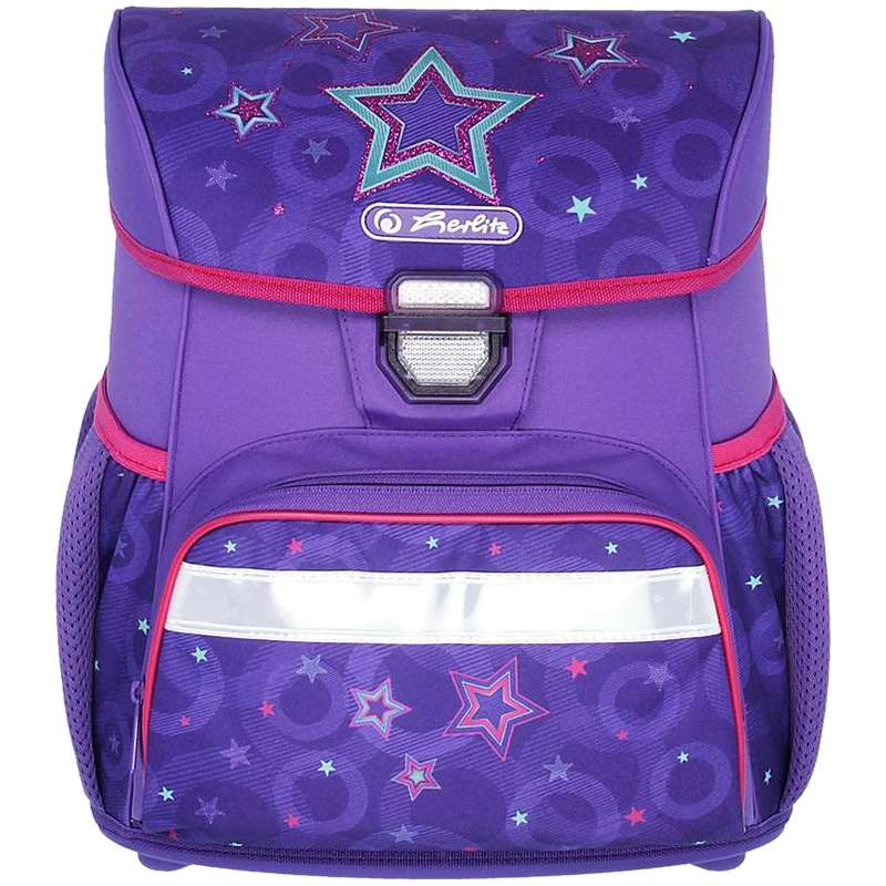 Ранец без наполения, эргономичная спинка и уплотненные регулируемые лямки из вентилируемого материала. Замок-защелка легко открывается и закрывается благодаря специальному клапану. Большое внутреннее отделение, разделенное регулируемой перегородкой. Расписание уроков под крышкой ранца. Передний наружный карман на молнии. 2 боковых кармана на резиночке. Водоотталкивающая ткань. Светоотражатели 3M на переднем кармане, боковых карманах и лямках. Прочное пластиковое дно защищающие от загрязнения.Ранец Herlitz Loop "Stars", 37*31*24см, 1 отделение, 3 кармана, эргономичная спинка