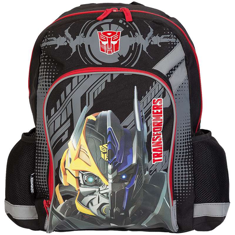 Рюкзак, с одним отделением на молнии, фронтальным карманом на молнии и двумя боковыми карманами; внутри отделения - один разделитель и откидное внутреннее дно; мягкая спинка выполнена из поролона обтянутого воздухообменной сеткой; лямки анатомической S-образной формы обтянуты воздухообменной сеткой, регулируются по длине; для безопасности рюкзак снабжен светоотражающими элементамиРюкзак Академия Групп "Transformers" 40*30*13см, 1 отделение, мягкая спинка