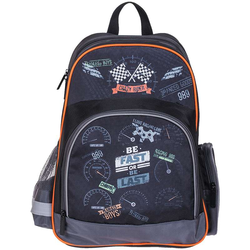 Серия Light - это лёгкие яркие рюкзаки для детей младшего школьного возраста. Рюкзак имеет 2 отделения, большой передний карман на молнии и 2 боковых кармана. Рюкзаки данной серии изготовлены из прочного нейлона, характеризующегося повышенной износостойкостью и в тоже время мягкостью. Уплотненная спинка с эргономичными вставками и широкие лямки делают рюкзак максимально удобным. Светоотражающие элементы на лямках, передней части рюкзака и боковых карманах гарантируют безопасность ребёнка в тёмное время суток.Рюкзак Berlingo Light "Be fast" 42*28*17см, 2 отделения, 3 кармана, эргономичная спинка