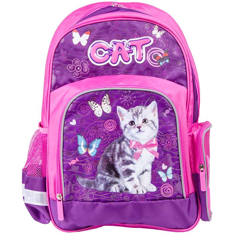 Серия Light - это лёгкие яркие рюкзаки для детей младшего школьного возраста. Рюкзак имеет 2 отделения, большой передний карман на молнии и 2 боковых кармана. Рюкзаки данной серии изготовлены из прочного нейлона, характеризующегося повышенной износостойкостью и в тоже время мягкостью. Эргономичная спинка и широкие лямки делают рюкзак максимально удобным. Светоотражающие элементы на лямках, передней части рюкзака и боковых карманах гарантируют безопасность ребёнка в тёмное время суток.Рюкзак Berlingo Light "Kitty" 42*28*17см, 2 отделения, 3 кармана, эргономичная спинка