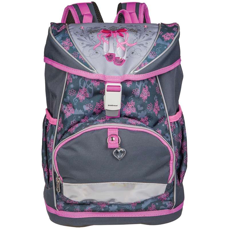 Твердая спинка эргономичной конструкции, широкие, мягкие регулируемые лямки, система противооткидов для регулировки положения ранца на спине, пластиковое дно, светоотражатели на передней части, боковых сторонах и лямках, одно основное + 2 складывающихся отделения + карман на молнии для аксессуаров, металлический замок со светоотражающим элементом.Рюкзак Erich Krause Ergo-Fly "Балет" 31*36*200см, 2 отделения, 1 карман, эргономичная спинка