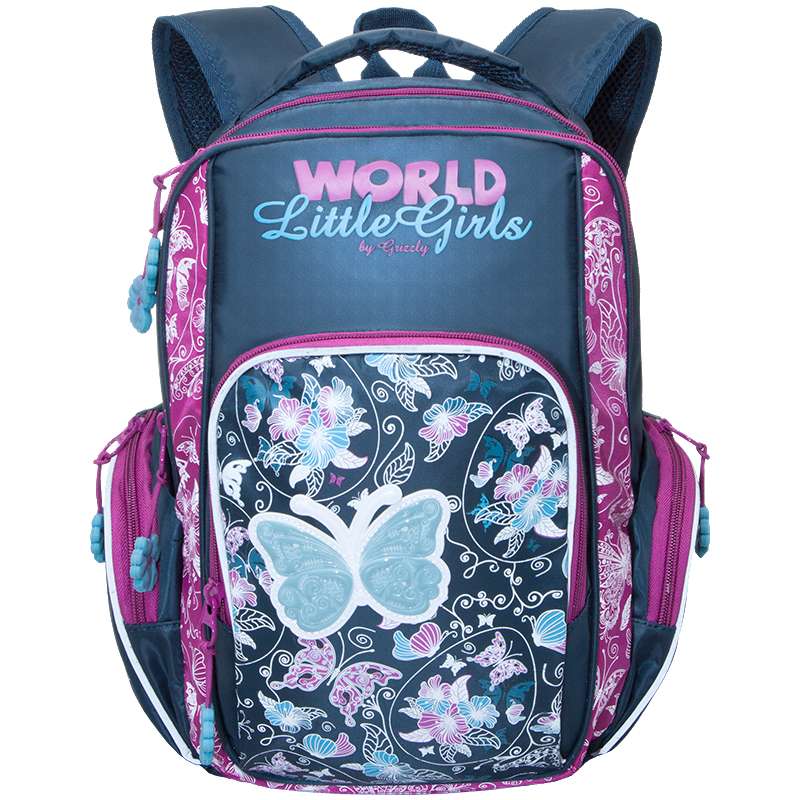 Рюкзак школьный, два отделения, объемный карман на молнии на передней стенке, объемные боковые карманы на молнии, внутренний карман, внутренний подвесной карман на молнии, откидное жесткое дно, жесткая анатомическая спинка, мягкая укрепленная ручка, укрепленные лямки, светоотражающие элементы с четырех сторонРюкзак Grizzly, 27*38*19см, 2 отделения, 3 кармана, анатомическая спинка