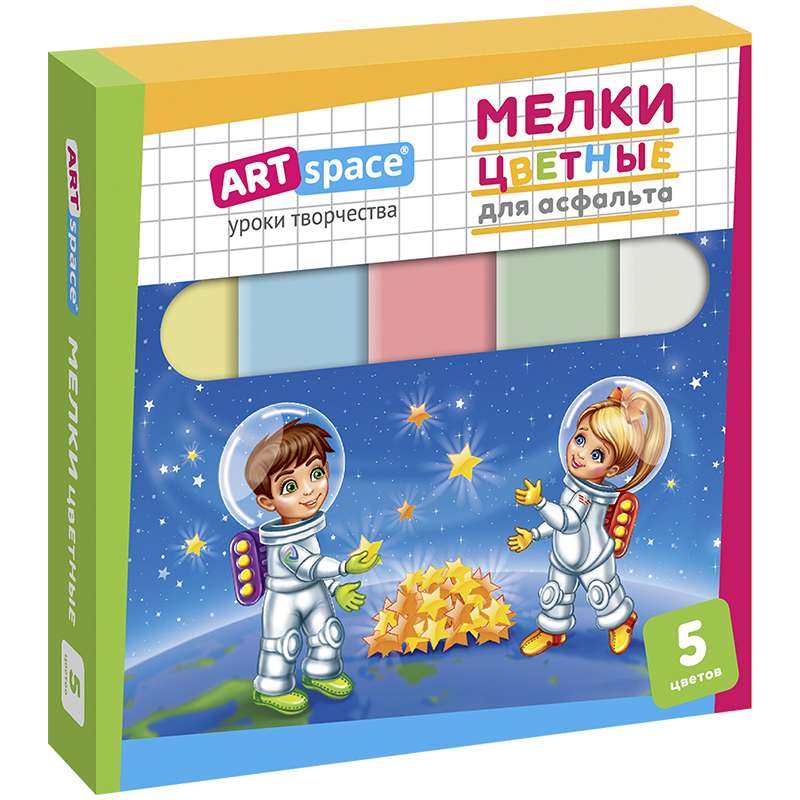 Набор цветных мелков. Подходит для классных и аудиторных досок, а также для рисования на асфальте. В коробочке 5 брусочков.Набор цветных мелков асфальтовых ArtSpace, 5шт.
