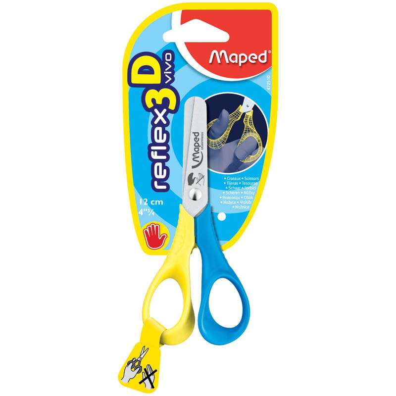 Ножницы VIVO обучающие. 12 см, разработаны с учетом эргономики детской руки, специально для левшей. Цвет двухцветные ассорти: голубой, розовый, сине-желтыйНожницы детские для левшей Maped "Vivo" 12см, европодвес