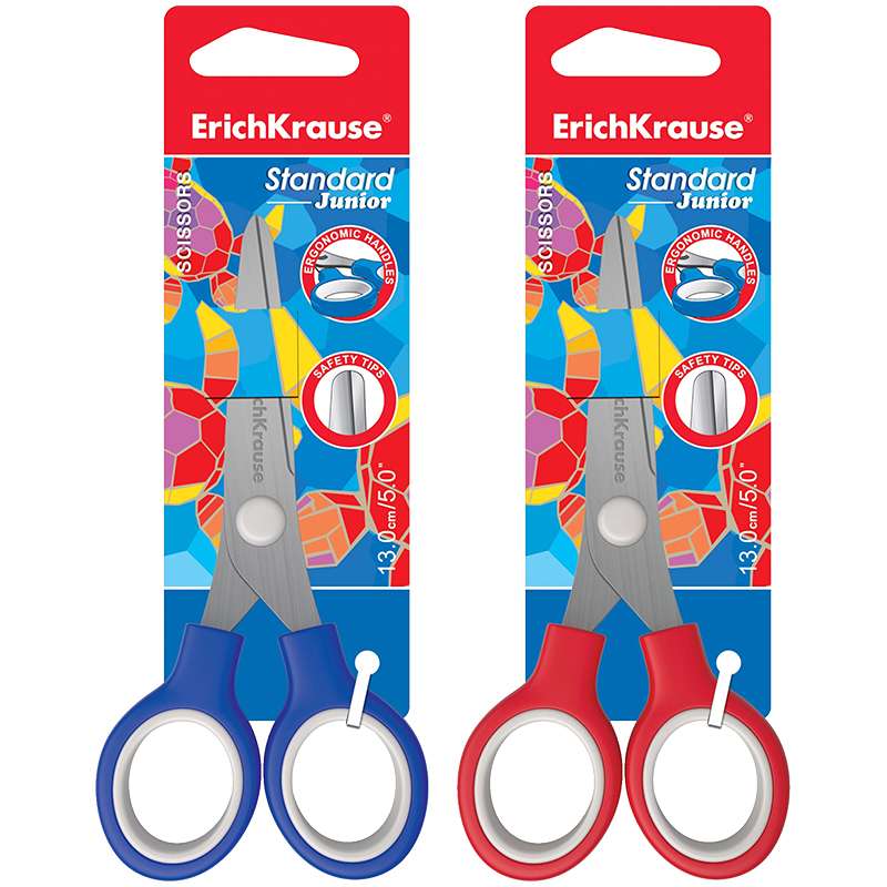Ножницы из высококачественной нержавеющей стали с безопасными закругленными концами лезвий. Эргономичные ручки.Ножницы детские Erich Krause "Standard Junior" 13см, европодвес