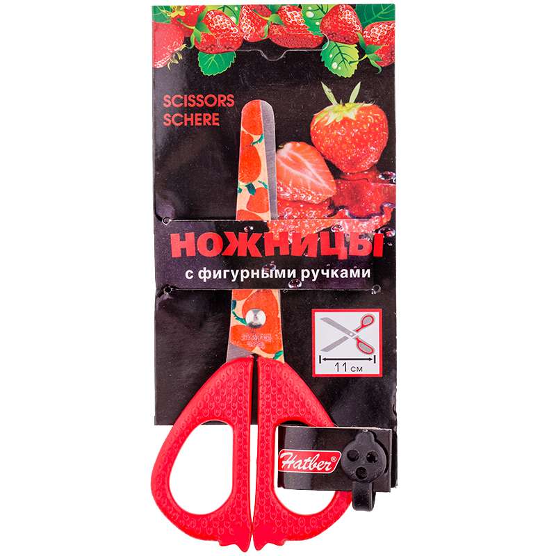 Ножницы детские с фигурными ручками в виде фруктов: яблоко, апельсин, клубника. Удобная упаковка с европодвесом, с возможностью испытать ножницы в руке, не нарушая упаковку.Ножницы детские Hatber "Фрукты" 11см, европодвес