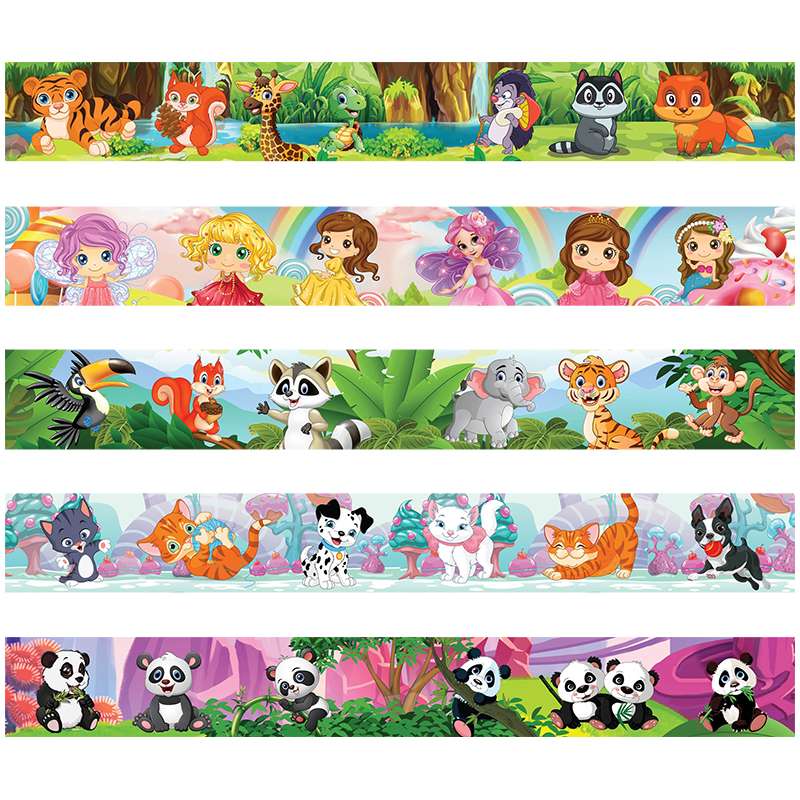 Картонная закладка с магнитной полосой, размер 25*200 мм. Упаковка в пакет с клеевым краемЗакладка - магнит для книг 25*200 мм "Мультяшки", блестки