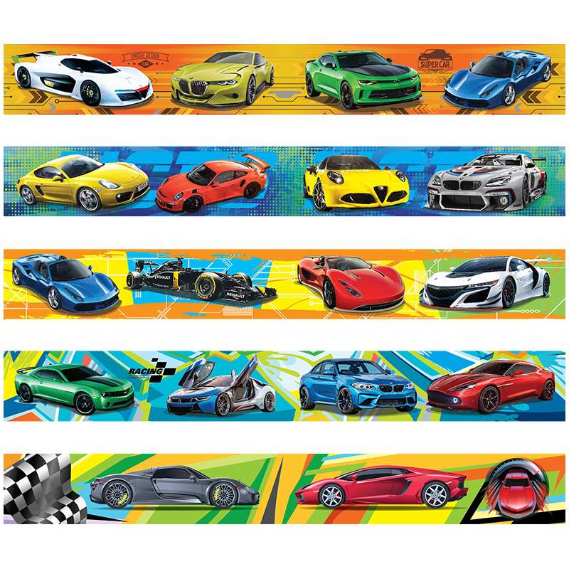 Картонная закладка с магнитной полосой, размер 25*200 мм. Упаковка в пакет с клеевым краемЗакладка - магнит для книг 25*200 мм "Спортивные автомобили", блестки