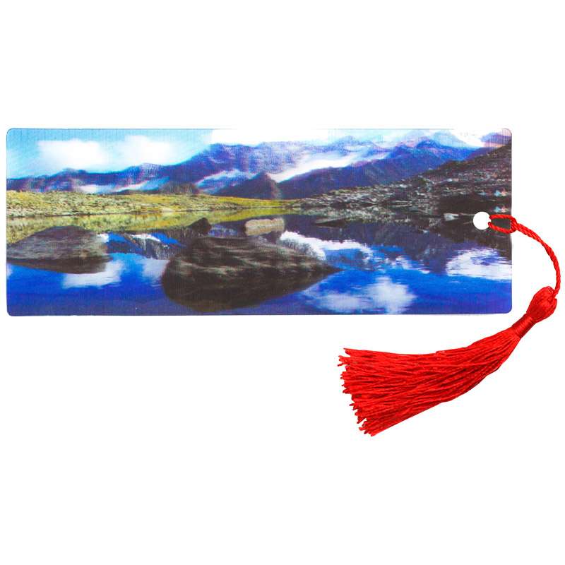 Закладка для книг с 3D- изображением. Имеется текстильная кисточка (декоративный шнурок). На обратной стороне имеется линейка.Закладка для книг 3D с линейкой 150*55 мм "Горный пейзаж", декоративный шнурок