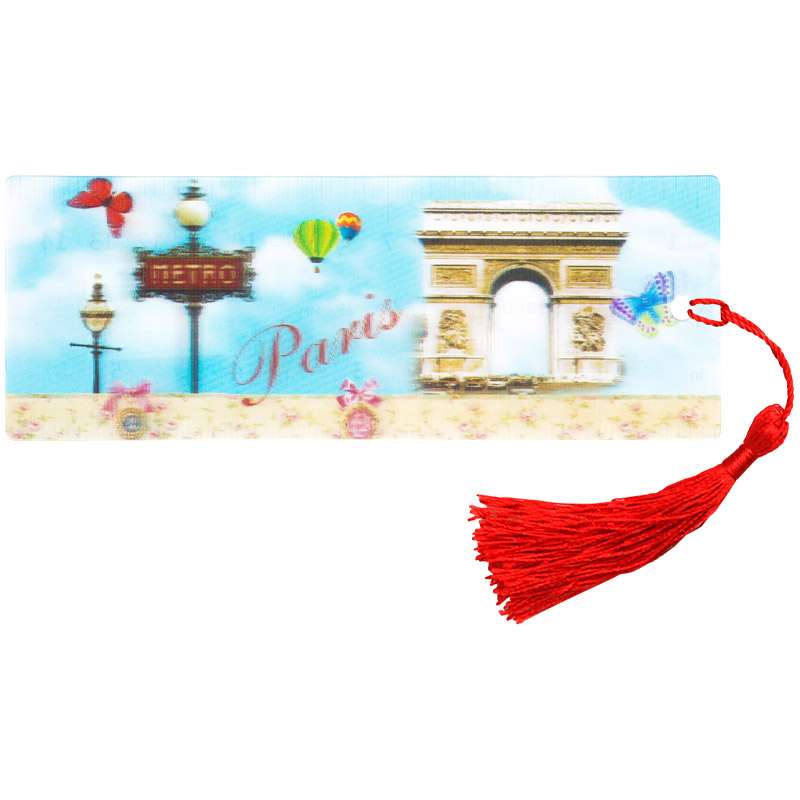 Закладка для книг с 3D- изображением. Имеется текстильная кисточка (декоративный шнурок). На обратной стороне имеется линейка.Закладка для книг 3D с линейкой 150*55 мм "Париж", декоративный шнурок