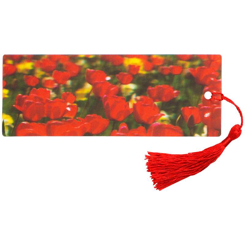 Закладка для книг с 3D- изображением. Имеется текстильная кисточка (декоративный шнурок). На обратной стороне имеется линейка.Закладка для книг 3D с линейкой 150*55 мм "Тюльпаны", декоративный шнурок