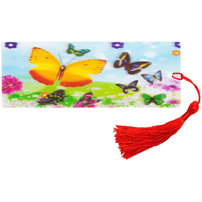 Закладка для книг с 3D- изображением. Имеется текстильная кисточка (декоративный шнурок). На обратной стороне имеется линейка.Закладка для книг 3D с линейкой, 150*55мм, ArtSpace "Бабочки", декоративный шнурок