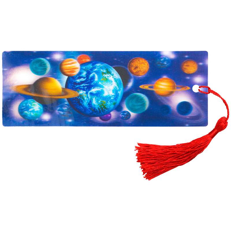 Закладка для книг с 3D- изображением. Имеется текстильная кисточка (декоративный шнурок). На обратной стороне имеется линейка.Закладка для книг 3D с линейкой, 150*55мм, ArtSpace "Космос", декоративный шнурок