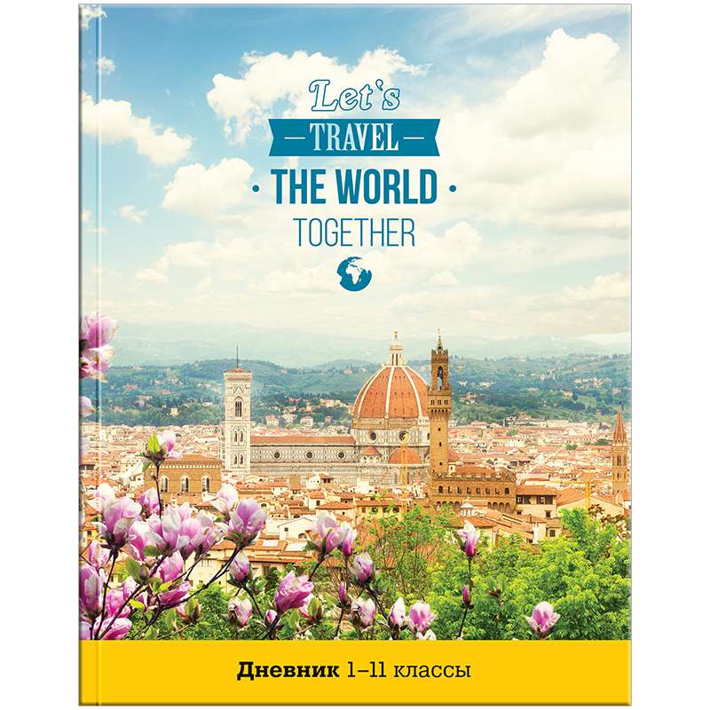 Дневник школьный в твердом переплете с универсальным блоком для учеников 1-11 классов. Обложка из твердого картона с глянцевой ламинацией. Форзацы запечатаны золотистой краской.Дневник 1-11 кл. 40л. (твердый) "Путешествие по миру", глянцевая ламинация
