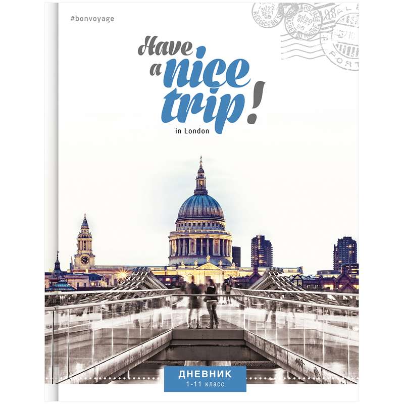 Дневник школьный в твердом переплете с универсальным блоком для учеников 1-11 классов. Обложка из твердого картона с печатью по металлизированной бумаге и глянцевой ламинацией. Форзацы запечатаны золотистой краской.Дневник 1-11 кл. 40л. (твердый) "Путешествия. Nice Trip", металлизация