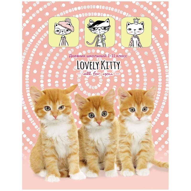 Дневник школьный. Формат А5. Обложка -7БЦ с глянцевой ламинацией. На обложке есть вырубка. Внутренний блок -офсетный, 65 гр/м2. Универсальная шпаргалка.Дневник 1-11 кл. 48л. (твердый) "Рыжие котята-2", вырубка, глянцевая ламинация