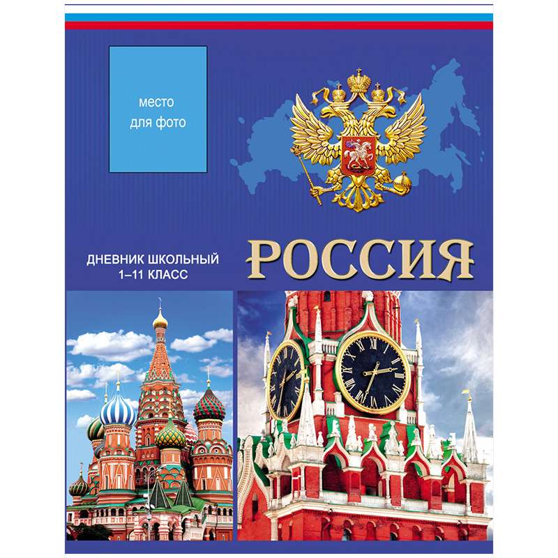 Дневник школьный. Формат А5. Обложка -7БЦ с глянцевой ламинацией. На обложке есть вырубное окошко для фотографии. Внутренний блок -офсетный, 65 гр/м2. Универсальная шпаргалка.Дневник 1-11 кл. 48л. (твердый) "Синий Российский дизайн", вырубное окошко для фото, глянц.ламинация