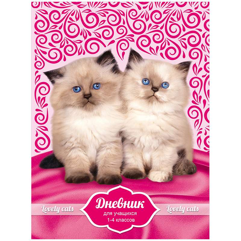 Дневник для младших классов со справочной информацией. Блок внутренний -офсет белый 100% белизны, плотностью 60 гр/м2, печать в 1 краску (черный цвет). Обложка - твердый переплет (7БЦ) с матовой ламинацией и выборочным бархатом. На форзацах дневника есть справочная информация (дорожные знаки, правила перехода проезжей части, пожарная безопасность, взаимоотношение с людьми)Дневник 1-4 кл. 48л. (твердый) "Пушистые котята", матовая ламинация, выборочный бархат