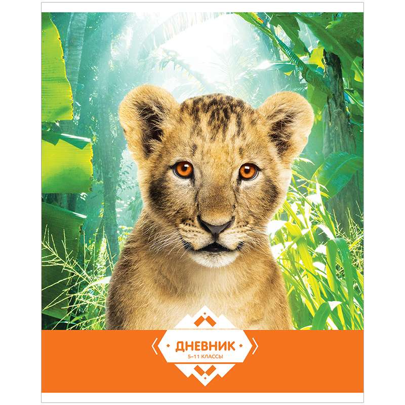 Дневник школьный на скобе. Обложка из плотного целлюлозного картона. Бумага блока - 60гр/м2. ВД-лак.Дневник 5-11 кл. 48л. "Львенок", ВД-лак