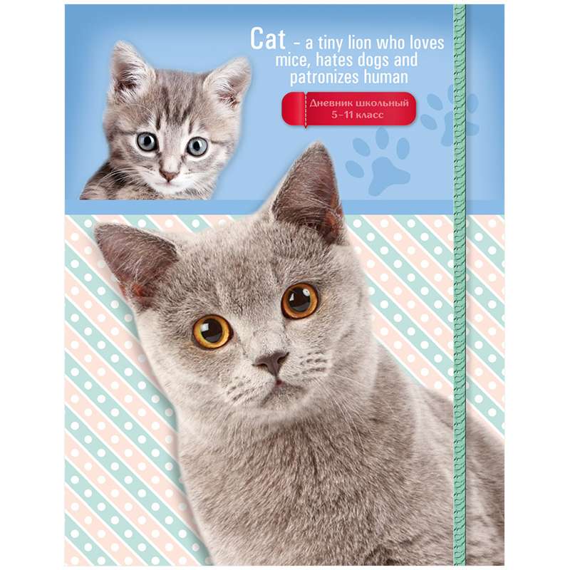Дневник для старших классов со шпаргалкой. Обложка -7БЦ с блестками. Внутренний блок -офсетный, 65 гр/м2. На резинкеДневник 5-11 кл. 48л. (твердый) "Кот и котенок", блестки, на резинке