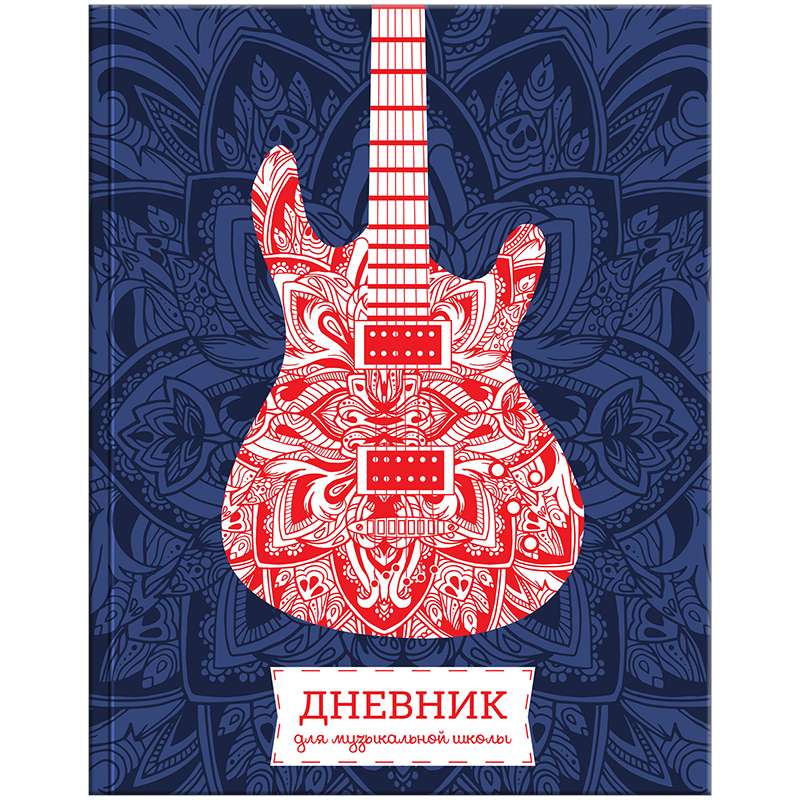 Дневник для учеников музыкальной школы. Твердая обложка с глянцевой ламинацией. Блок с тематическим наполнением для музыкальной школы. Форзацы запечатаны золотистой пантонной краской.Дневник для музыкальной школы 48л. (твердый) "Стиль. Гитара", глянцевая ламинация