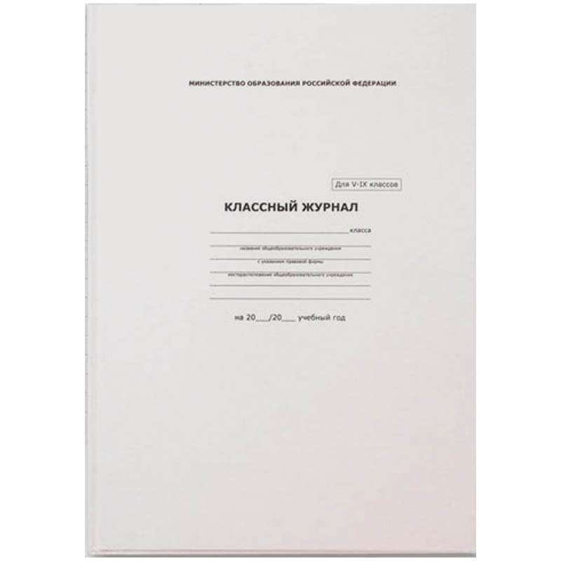 Классный для журнал 5-9 классов. Переплет -7БЦ. Внутренний блок - типографская бумага, 65 г/м2.Классный журнал 5-9 кл.