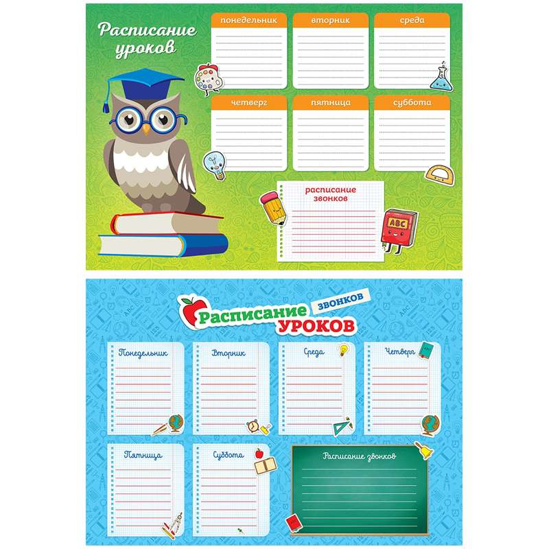 Расписание уроков формата А3 сделано на плотном целлюлозном импортном картоне плотностью 200 гр/м2. В одном артикуле представлено 2 дизайна с тематикой "школа". Для дополнительного удобства предусмотрено место для записи расписания звонков. Расписания упакованы в термоусадочную пленку по 20 шт. (по 10шт каждого из 2-ух дизайнов). Транспортная упаковка - гофрокороб.Расписание уроков А3 "Школьное", выборочный уф-лак