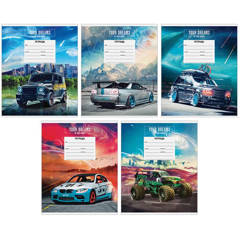 Внутренний блок – офсет 60 г/м² в клетку с полями. Обложка – мелованный картон, ВД-лак. Объем блока – 12 л. Формат А5.Тетрадь 12л., клетка ArtSpace "Авто. Your dreams"