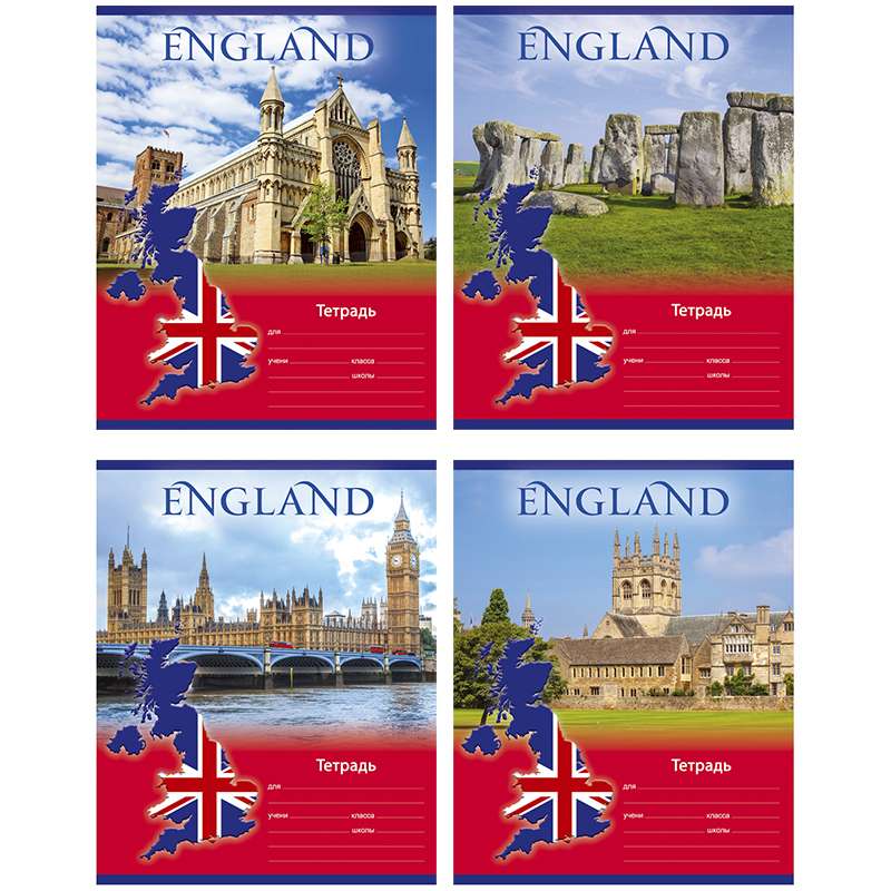 Формат А5. Вид крепления -скрепка. Обложка -мелованный картон. Внутренний блок -офсетный, 60 грм2, клеткаТетрадь 12л. клетка "Meet Britain"