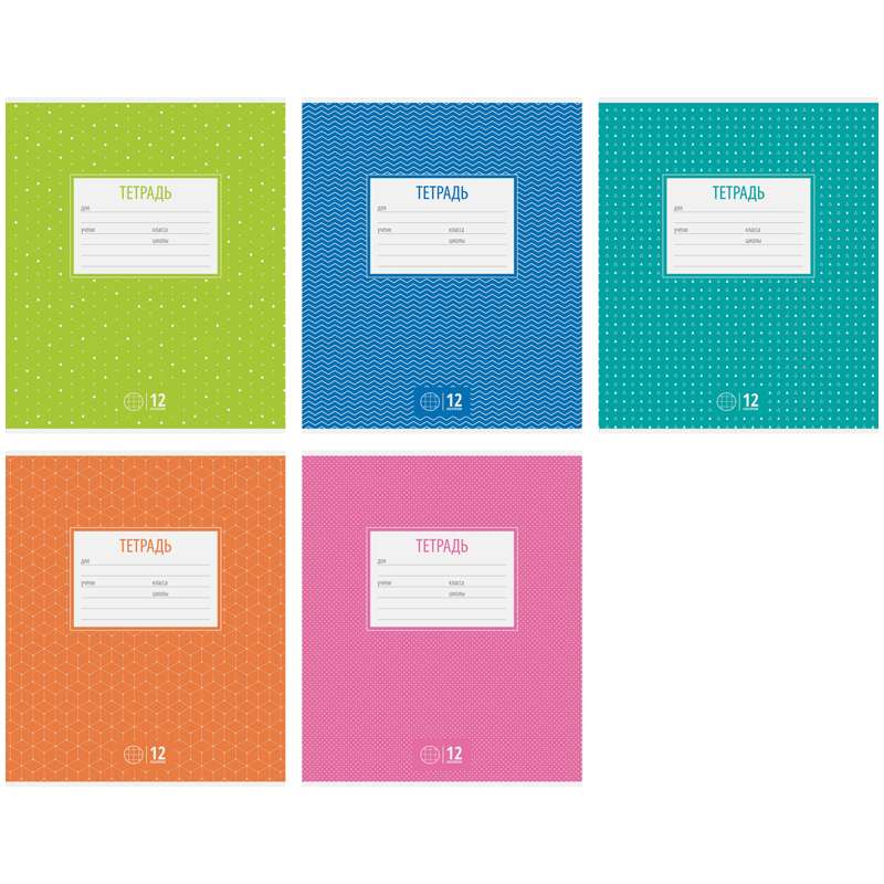 Формат А5. Вид крепления -скрепка. Обложка -мелованный картон. Внутренний блок -офсетный, 60 гр/м2, клеткаТетрадь 12л. клетка "Однотонная. С орнаментом"