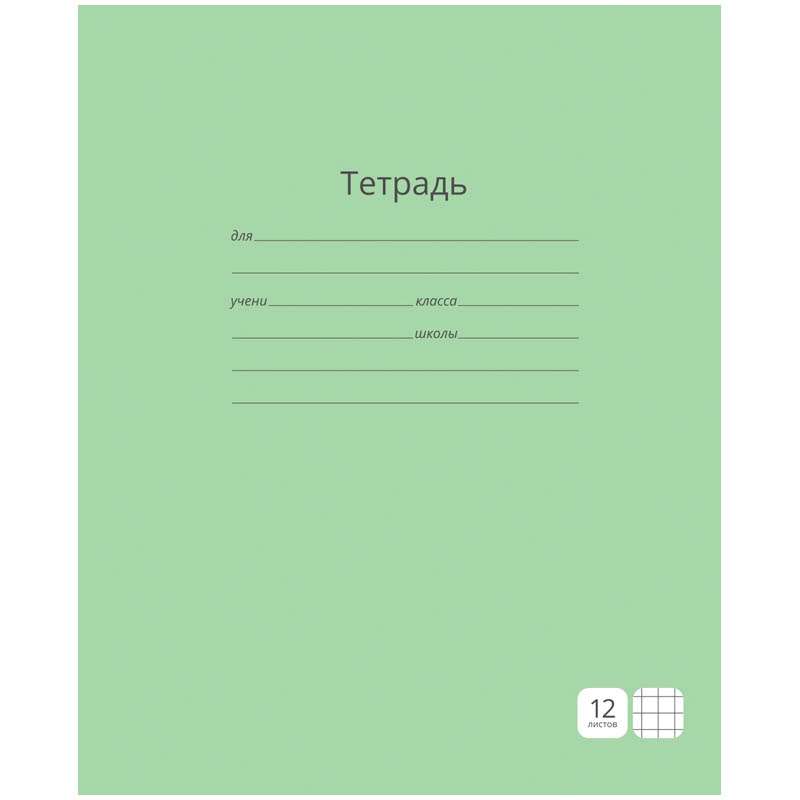 Тетрадь 12л. клетка "Однотонная. Зеленая"