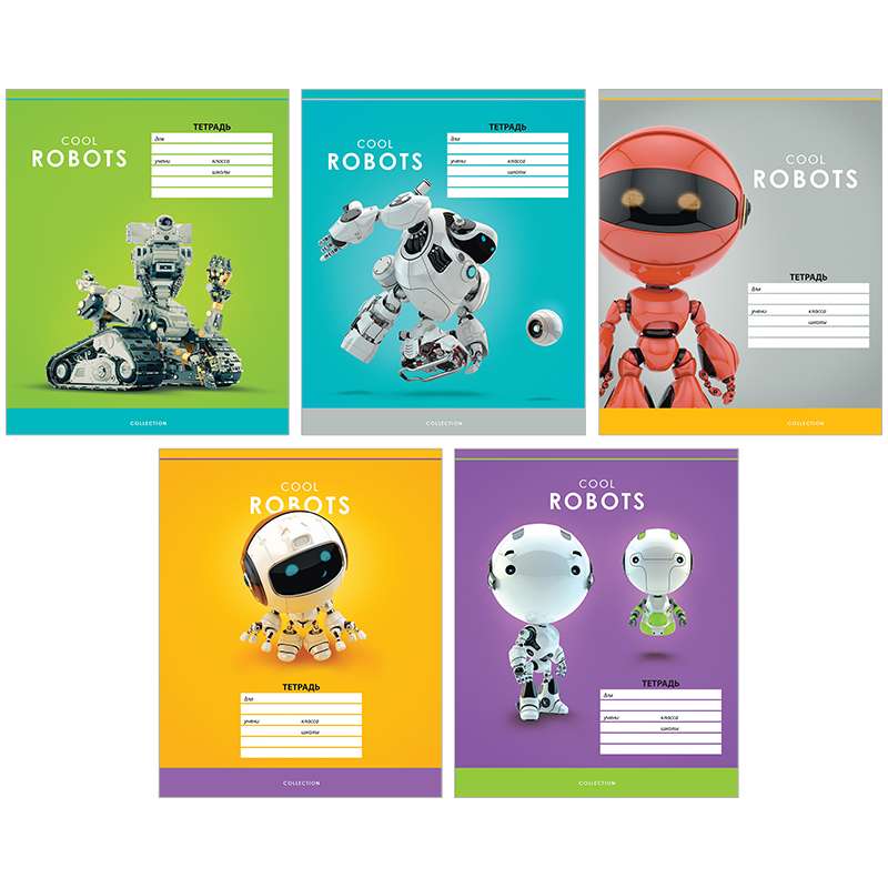 Внутренний блок – офсет 60 г/м² в клетку с полями. Обложка – мелованный картон, ВД-лак. Объем блока – 12 л. Формат А5.Тетрадь 12л. клетка "Роботы. Cool robots"