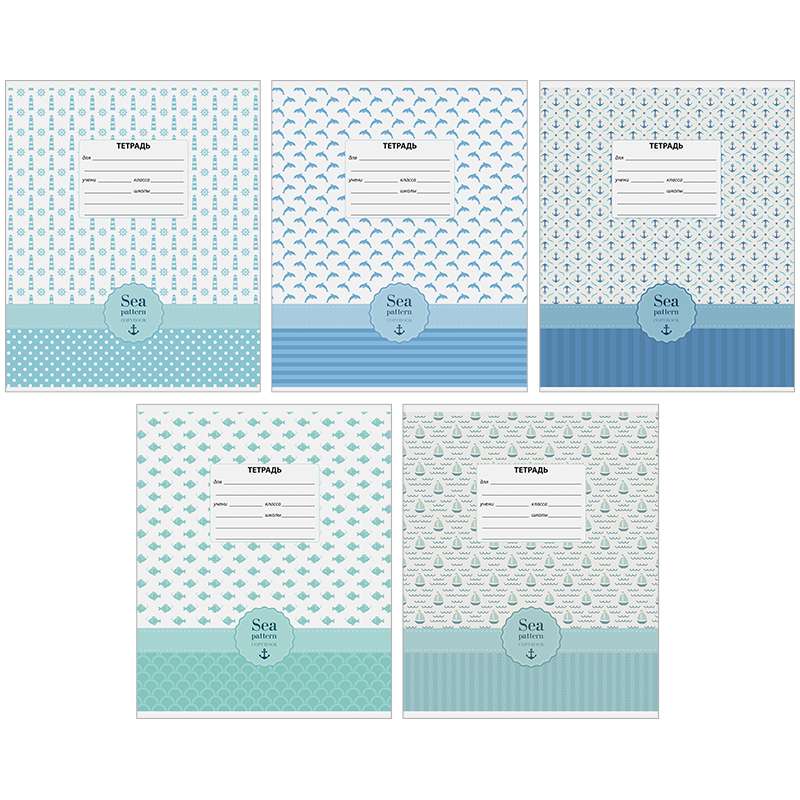 Внутренний блок – офсет 60 г/м² в клетку с полями. Обложка – мелованный картон, ВД-лак. Объем блока – 12 л. Формат А5.Тетрадь 12л. клетка "Узоры. Blue sea pattern"