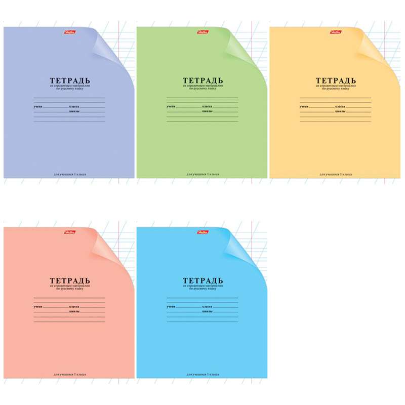 Формат А5. Вид крепления -скрепка. Обложка -мелованный картон. Внутренний блок -офсетный, косая линияТетрадь 12л. косая линия "С уголком", с информацией для 1 класса по русскому языку