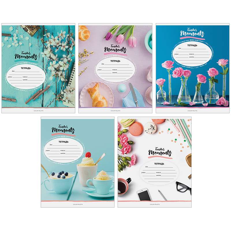 Внутренний блок – офсет 60 г/м² в линию с полями. Обложка – мелованный картон, ВД-лак. Объем блока – 12 л. Формат А5.Тетрадь 12л., линия ArtSpace "Стиль. Tender moments"