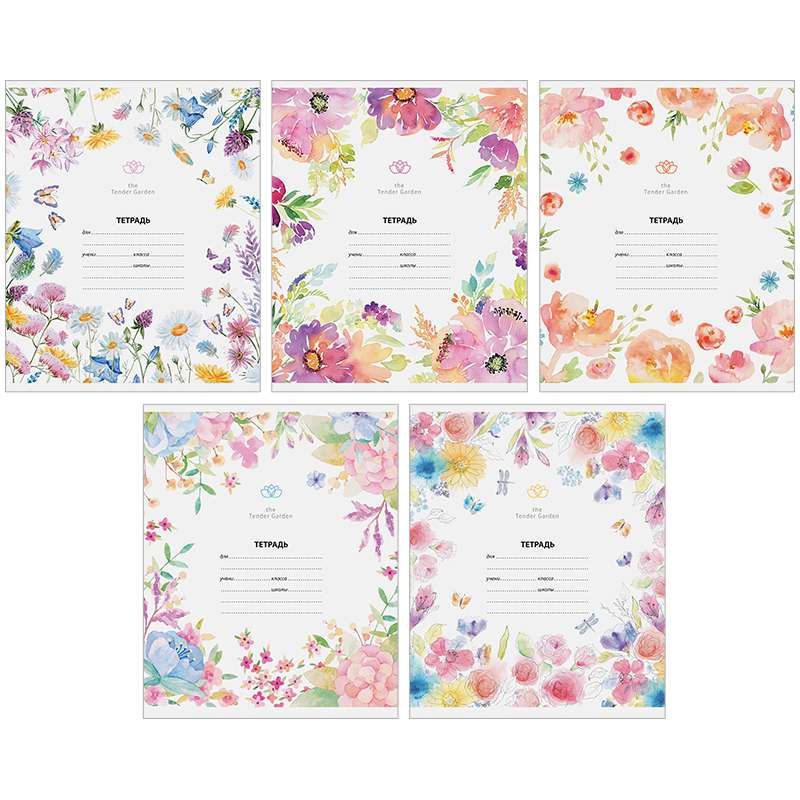 Внутренний блок – офсет 60 г/м² в линию с полями. Обложка – мелованный картон, ВД-лак. Объем блока – 12 л. Формат А5.Тетрадь 12л. линия "Цветы. Tender garden"
