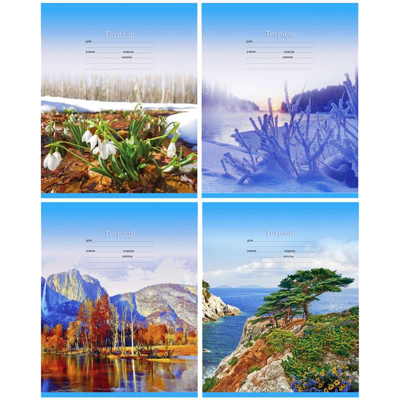 Формат А5. Вид крепления -скрепка. Обложка -мелованный картон. Внутренний блок -офсетный, 60 г/м2, линияТетрадь 12л. линия "Seasons"