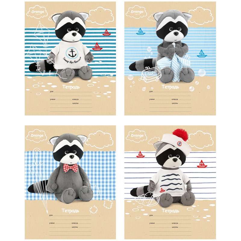 Формат А5. Вид крепления- скрепка. Внутренний блок- офсет. Обложка- мелованный картон, 10 дизайнов в спайкеТетрадь 18л., клетка BG "Orange Toys - Енотик Денни"