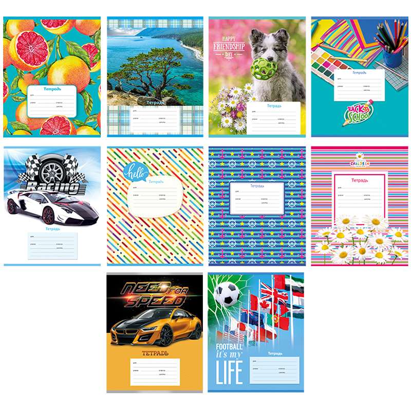 Формат А5. Вид крепления- скрепка. Внутренний блок- офсет. Обложка- мелованный картон, 10 дизайнов в спайкеТетрадь 18л., клетка BG "Super-Mix-4", ассорти