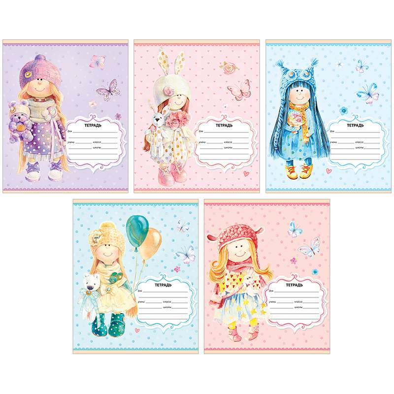Внутренний блок – офсет 60 г/м² в клетку с полями. Обложка – мелованный картон, ВД-лак. Объем блока – 18 л. Формат А5.Тетрадь 18л. клетка "Персонажи. Lovely dolls"