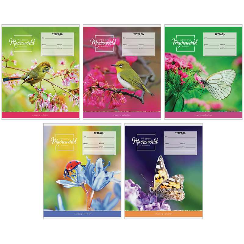 Внутренний блок – офсет 60 г/м² в клетку с полями. Обложка – мелованный картон, ВД-лак. Объем блока – 18 л. Формат А5.Тетрадь 18л. клетка "Природа. Macroworld"