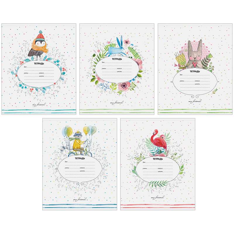 Внутренний блок – офсет 60 г/м² в клетку с полями. Обложка – мелованный картон, ВД-лак. Объем блока – 18 л. Формат А5.Тетрадь 18л. клетка "Рисунки. My friends"