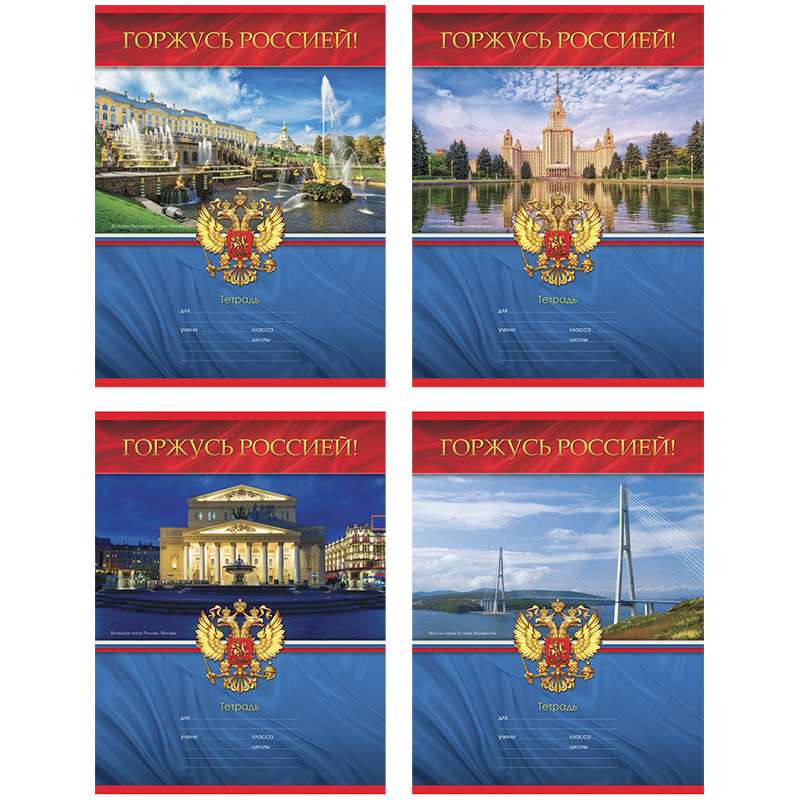 Формат А5. Вид крепления -скрепка. Обложка -мелованный картон. Внутренний блок -офсетный, линия, 70 гр/м2Тетрадь 18л. линия "Горжусь Россией!", эконом