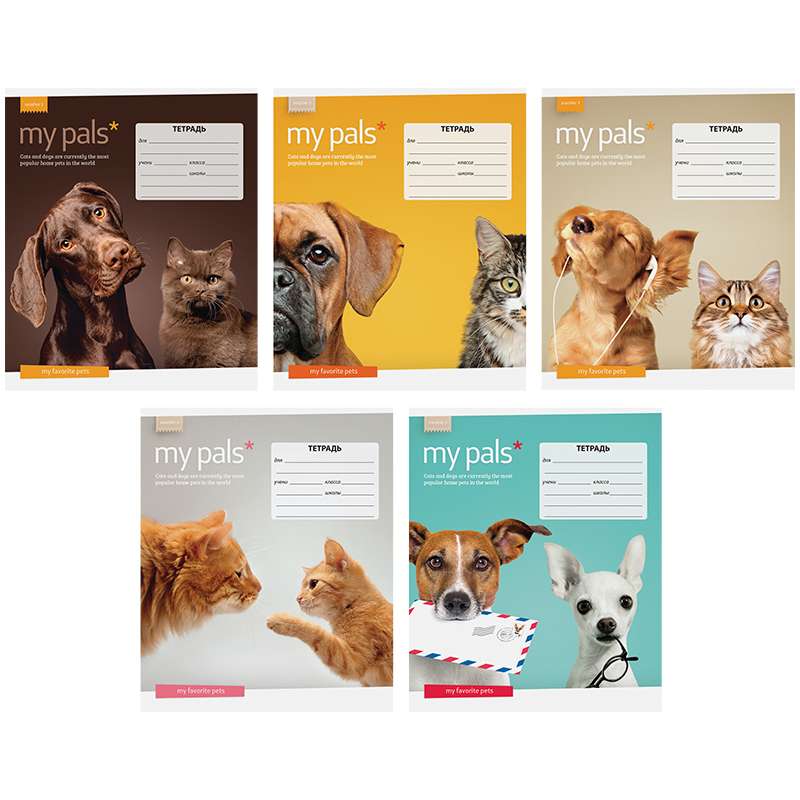 Внутренний блок – офсет 60 г/м². Обложка – мелованный картон, выборочный УФ-лак. Объем блока – 18 л. Формат А5Тетрадь 18л. линия "Питомцы. My pals (Мои друзья)", выборочный УФ-лак